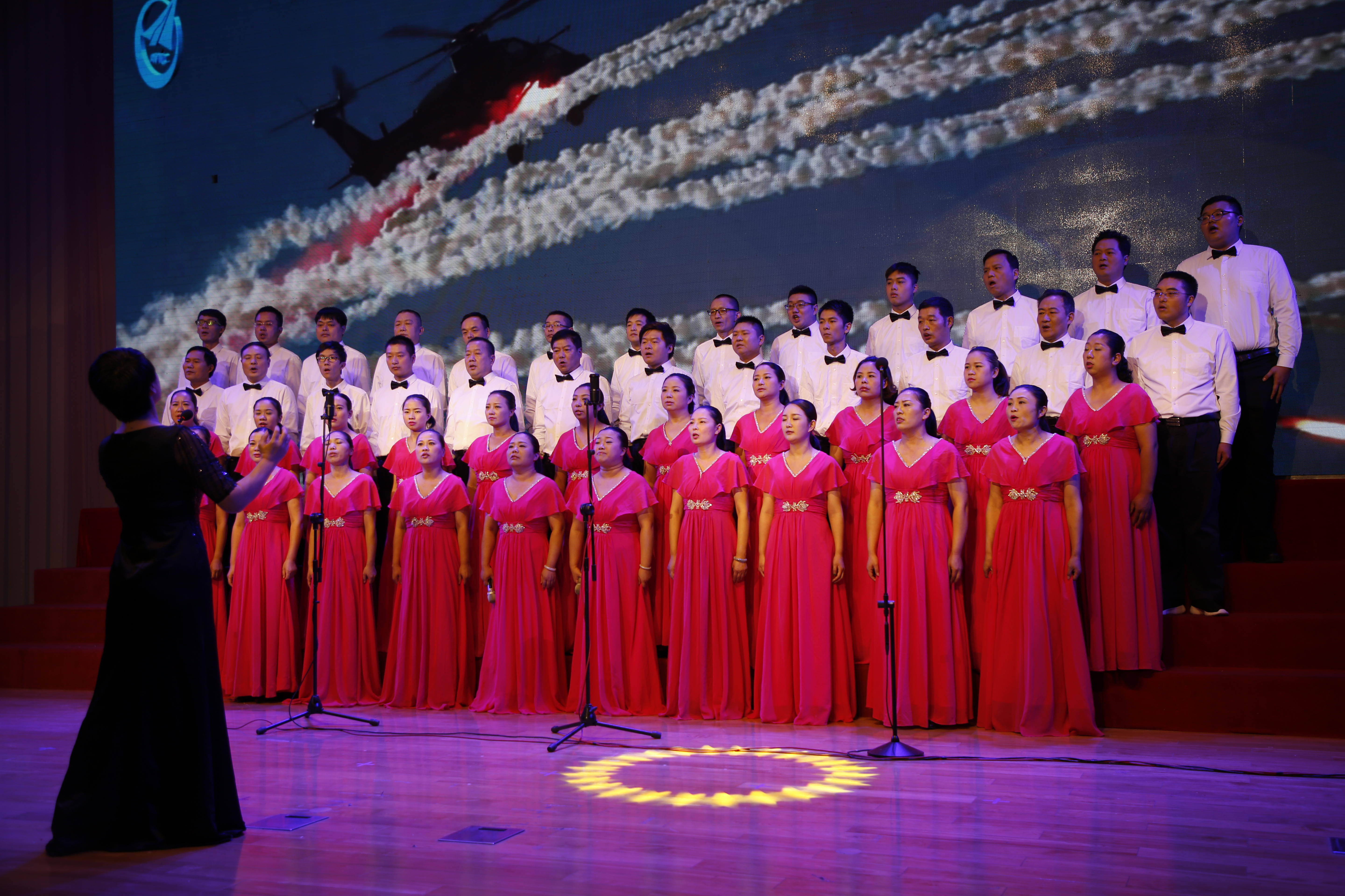 9月27日,中航高科總部員工中心歌聲嘹亮,座無虛席?!俺懰靖?傳承文化 凝聚力量”文藝匯演精彩上演。來自公司各直屬、直管單位派出的5支合唱隊(duì)依次登臺(tái),雄壯而有力的航空工業(yè)司歌《告訴世界 告訴未來》一遍又一遍響徹在公司的上空,唱出了高科人的報(bào)國(guó)志、航空情……