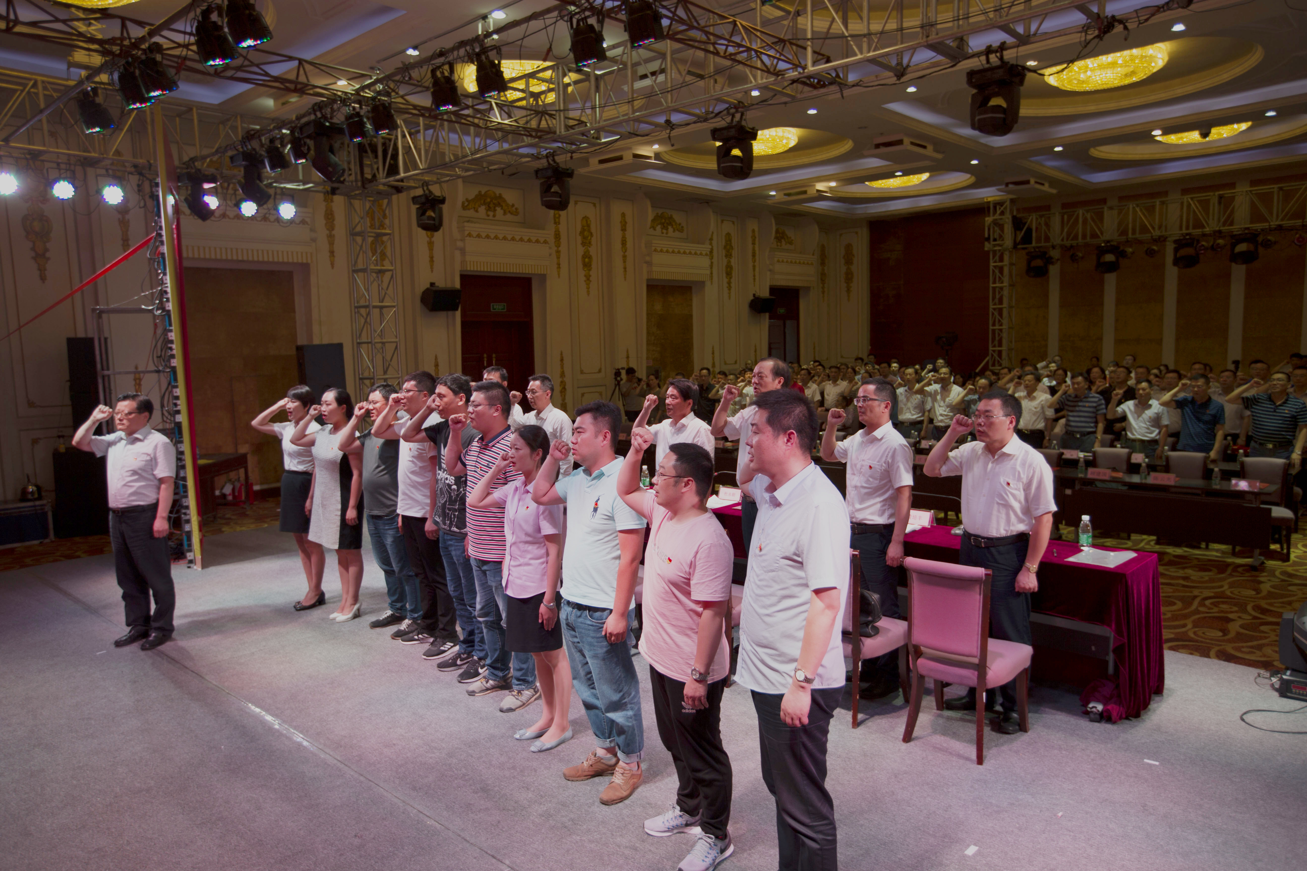 產(chǎn)控集團(tuán)黨委副書記、副董事長、總經(jīng)理陸強(qiáng)新帶領(lǐng)新黨員進(jìn)行入黨宣誓儀式,全體與會黨員莊嚴(yán)起立,舉起右拳,重溫入黨誓詞。