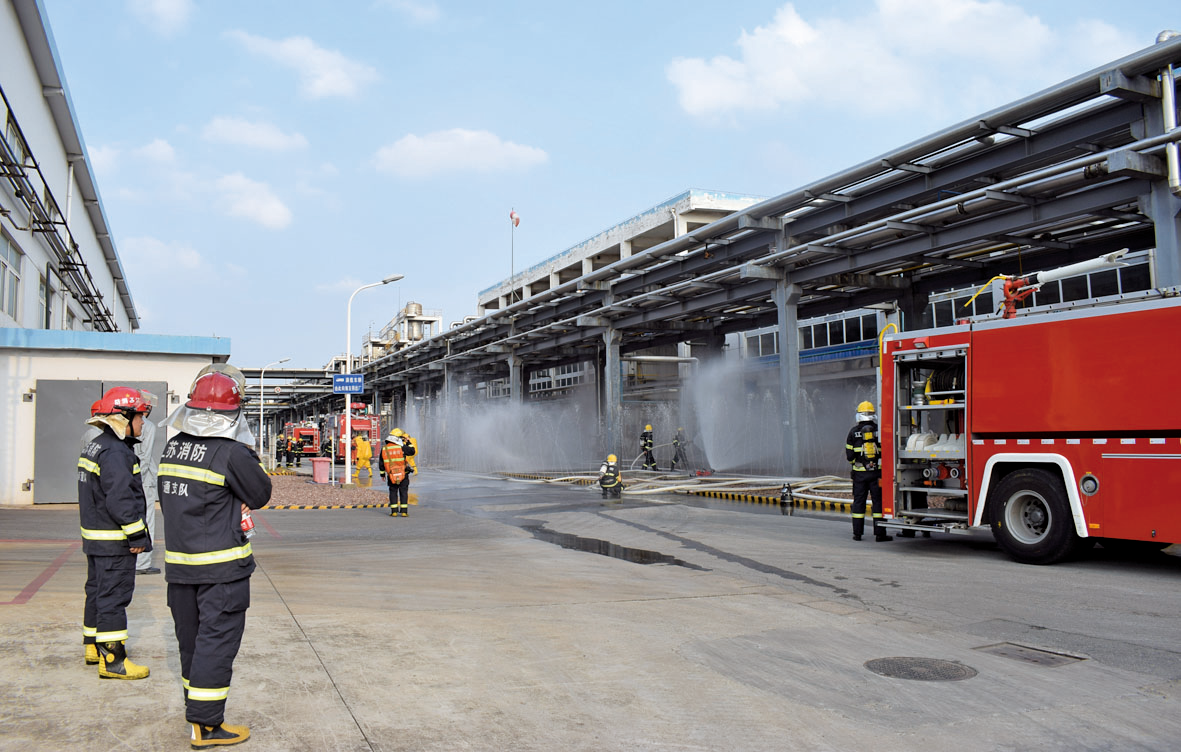 8月20日下午4時,南通經(jīng)濟開發(fā)區(qū)液氯泄露消防聯(lián)動演練在南通江山農(nóng)藥化工股份有限公司電化事業(yè)部氯堿分廠液氯儲槽區(qū)進行。