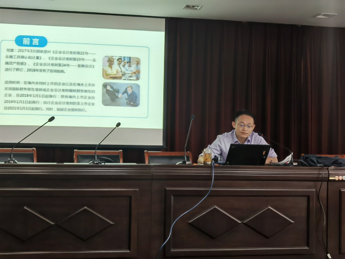 2018年財政部對企業(yè)會計準則第22號、第23號、第24號發(fā)布了修訂的應(yīng)用指南,要求執(zhí)行企業(yè)會計準則的非上市企業(yè)自2021年1月1日起施行,掌握并熟練運用新金融工具準則成為迫在眉睫的任務(wù)。為盡快掌握與熟練應(yīng)用新金融工具準則,10月20日下午,產(chǎn)控集團邀請了南通萬隆會計師事務(wù)所汪華平主任為產(chǎn)控集團財務(wù)人員開展了關(guān)于“金融工具準則”的培訓(xùn),集團本部及各子公司財務(wù)分管領(lǐng)導(dǎo)及財務(wù)部門負責(zé)同志參加了本次培訓(xùn)。