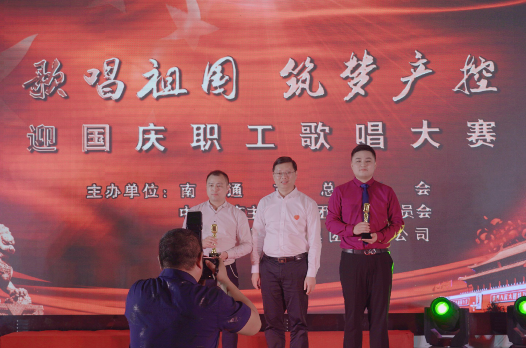 為慶祝中華人民共和國(guó)成立71周年, 9月30日下午,由南通市總工會(huì)、南通團(tuán)市委、南通產(chǎn)業(yè)控股集團(tuán)聯(lián)合主辦的“歌唱祖國(guó)、筑夢(mèng)產(chǎn)控”迎國(guó)慶職工歌唱大賽在君庭假日酒店宴會(huì)廳成功舉辦,集團(tuán)所屬各單位的參賽選手們各個(gè)激情高歌,祝福祖國(guó),祝福產(chǎn)控。南通揚(yáng)子碳素質(zhì)檢處王偉、機(jī)動(dòng)車(chē)間羅謙參加了本次比賽。王偉以一曲《我的中國(guó)我愛(ài)你》榮獲比賽一等獎(jiǎng)、羅謙的《又見(jiàn)山里紅》榮獲本次比賽鼓勵(lì)獎(jiǎng)。