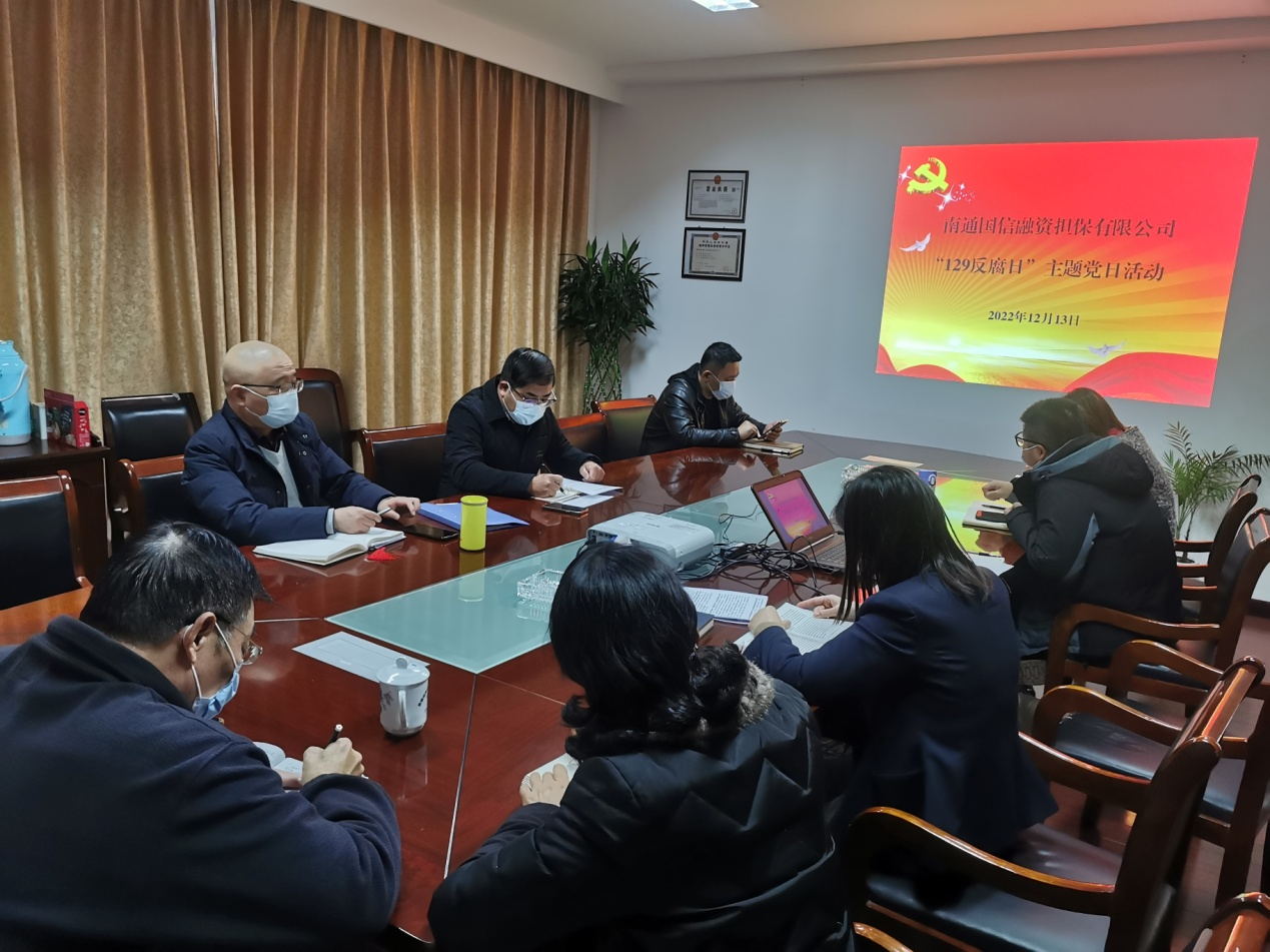 12月13日下午,國(guó)信擔(dān)保公司黨支部組織開(kāi)展了“12?9”國(guó)際反腐日主題黨日活動(dòng),公司全體干部職工參加了此次活動(dòng)。