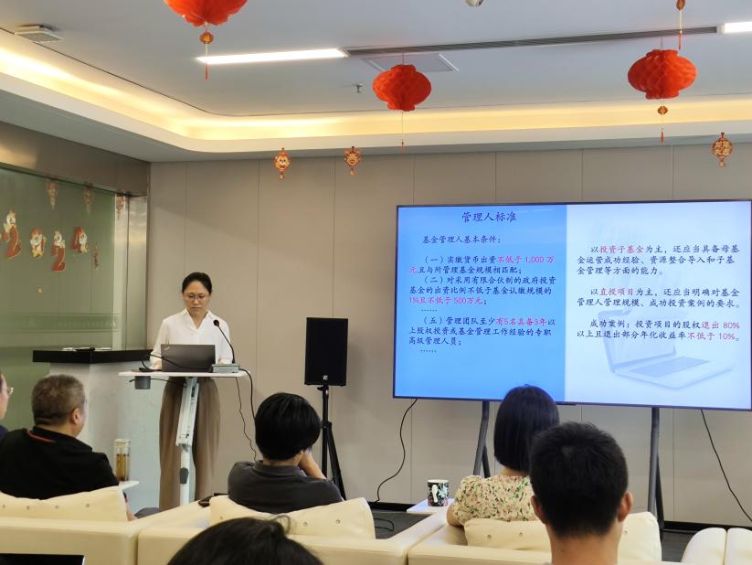 公司風(fēng)險(xiǎn)控制部季琳圍繞政府投資基金設(shè)立與募集、管理人遴選、基金投資決策、投后風(fēng)險(xiǎn)控制與績效評價(jià)、基金終止與退出等環(huán)節(jié),對政府投資基金管理要求進(jìn)行解讀。